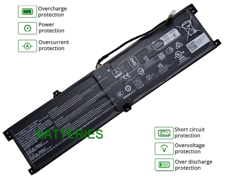- Notre batterie MSI Sword 17 HX B14VFKG contient des cellules de batterie de qualité A pour assurer une durée de vie de la batterie plus longue et plus de cycles de charge.