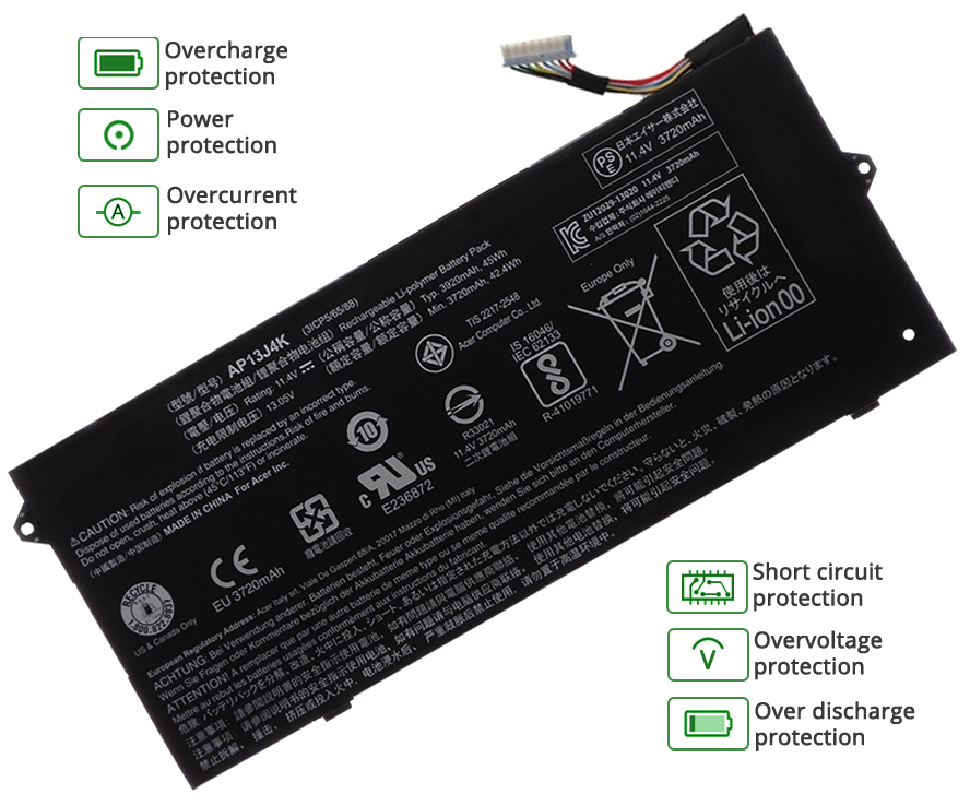 5. Notre batterie Acer NX.SHEAA.004 contient des cellules de batterie de qualité A pour assurer une durée de vie de la batterie plus longue et plus de cycles de charge.