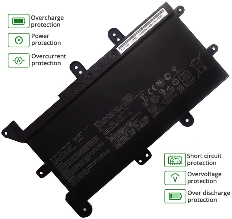 - Notre batterie ASUS G703GI-WS91K contient des cellules de batterie de qualité A pour assurer une durée de vie de la batterie plus longue et plus de cycles de charge.