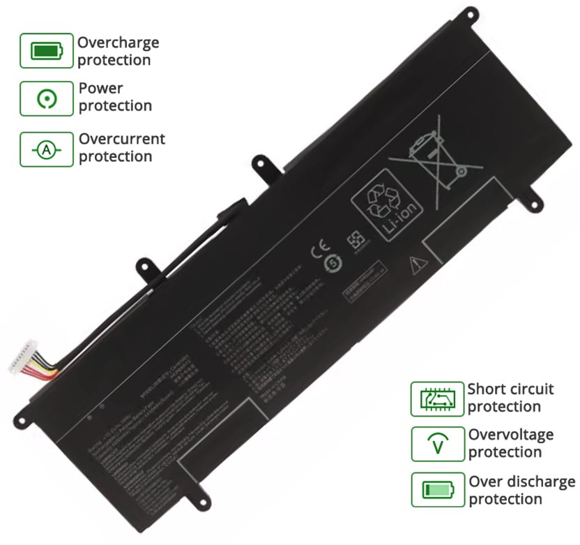 - Notre batterie ASUS UX481FL-BM043T contient des cellules de batterie de qualité A pour assurer une durée de vie de la batterie plus longue et plus de cycles de charge.