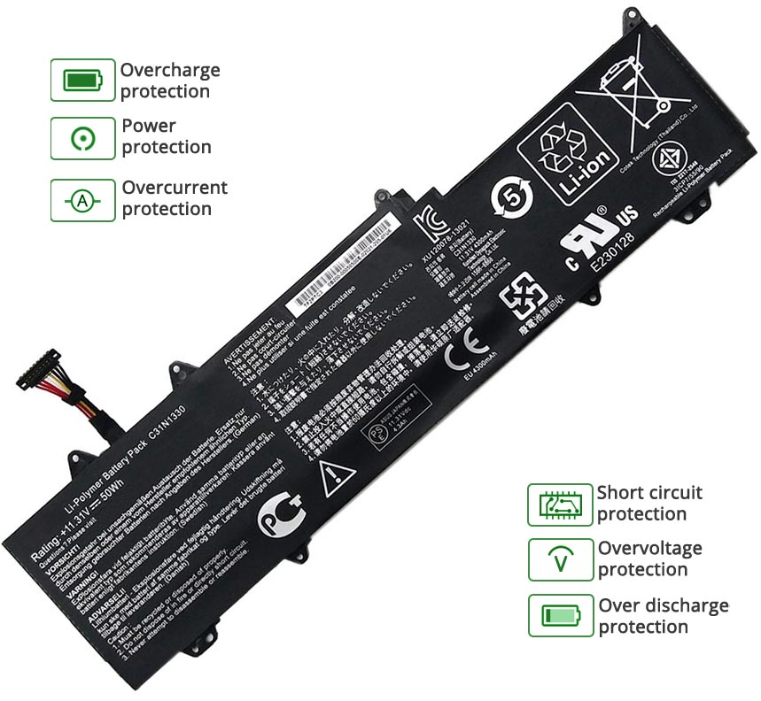 - Notre batterie ASUS Zenbook UX32LA-R3034H contient des cellules de batterie de qualité A pour assurer une durée de vie de la batterie plus longue et plus de cycles de charge.