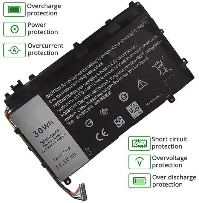 - Notre batterie Dell 271J9 contient des cellules de batterie de qualité A pour assurer une durée de vie de la batterie plus longue et plus de cycles de charge.