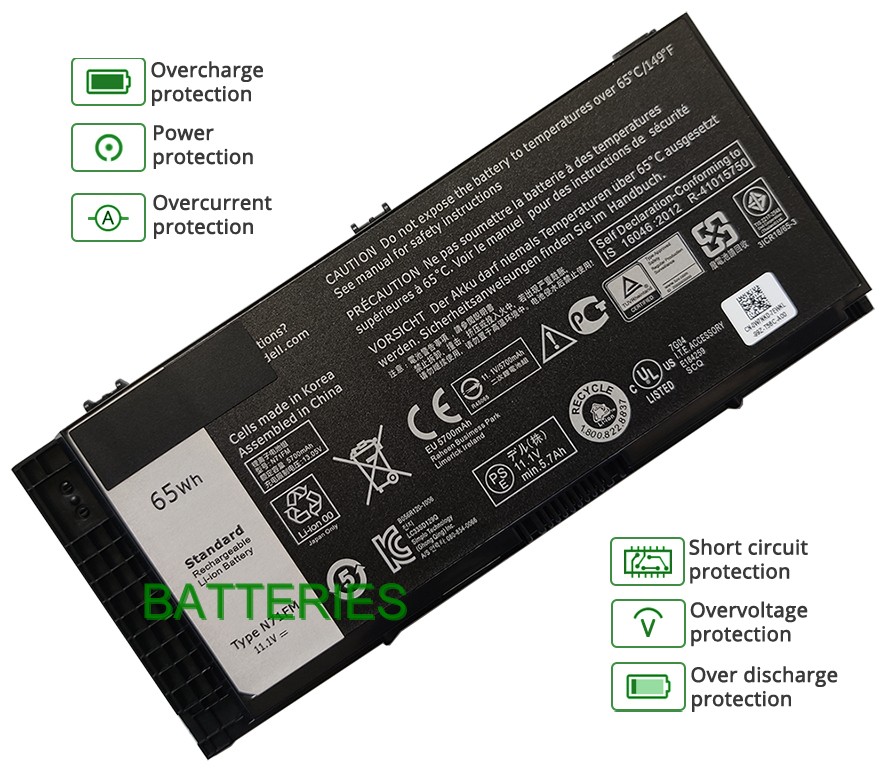 Batterie d'ordinateur portable Dell MT4OR de 65Wh