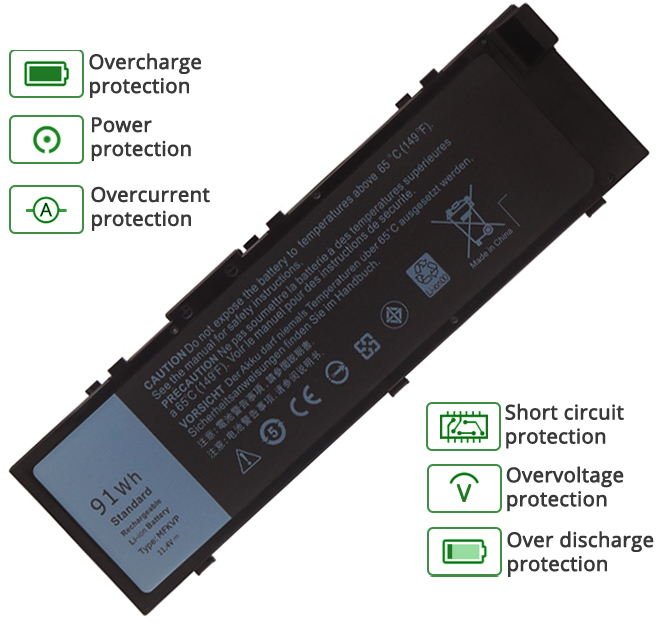 - Notre batterie Dell Precision 17 7000 Series contient des cellules de batterie de qualité A pour assurer une durée de vie de la batterie plus longue et plus de cycles de charge.